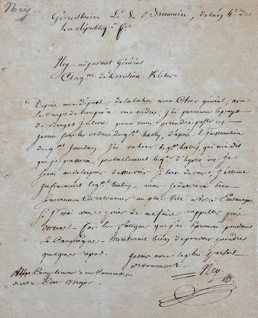 Lettre autographe signée, Grouchy au baron de Sainte-Suzanne