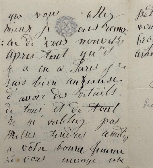Autograph letter signed, Duchess of Berry to Eugénie de Coucy, Duchess of Reggio
