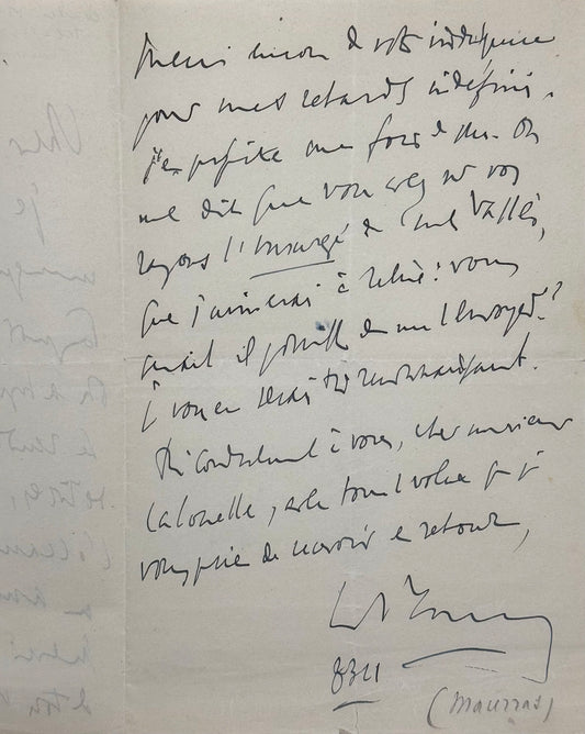 Autograph letter signed, Puvis de Chavanne to Durand-Tahier