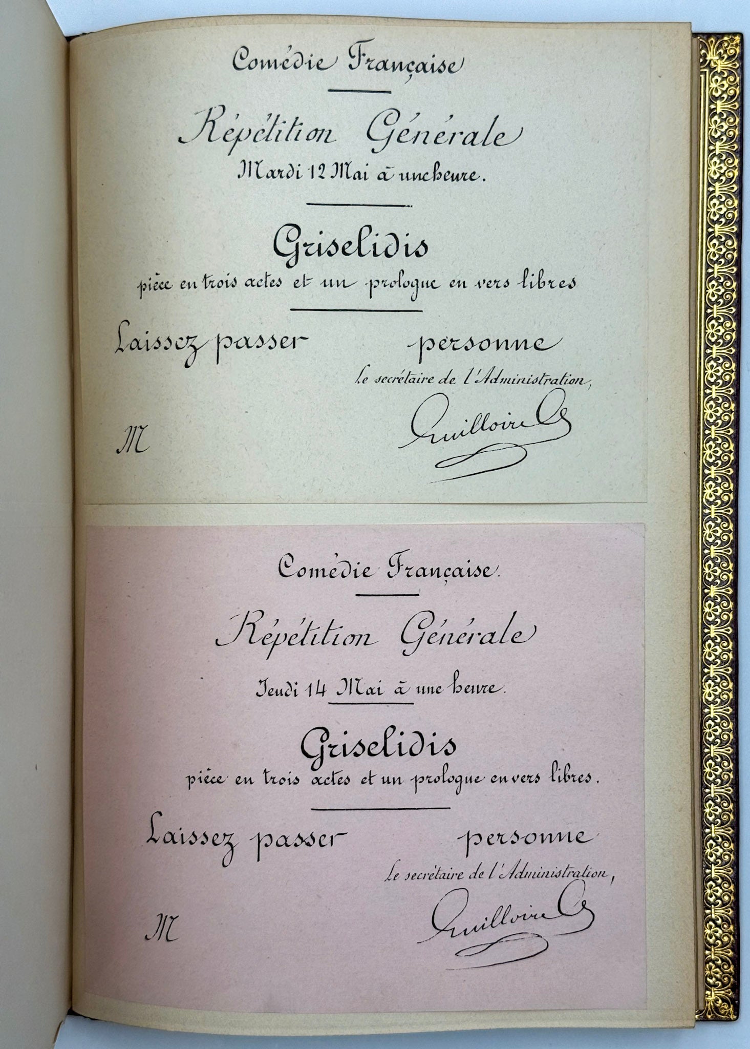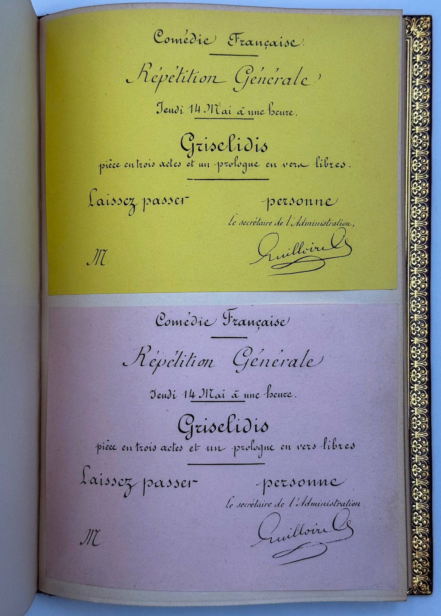 Bound at the end are five admission tickets for the general rehearsal of 14 May 1891 and three tickets for the first performance of 15 May, forming a valuable theatrical dossier.