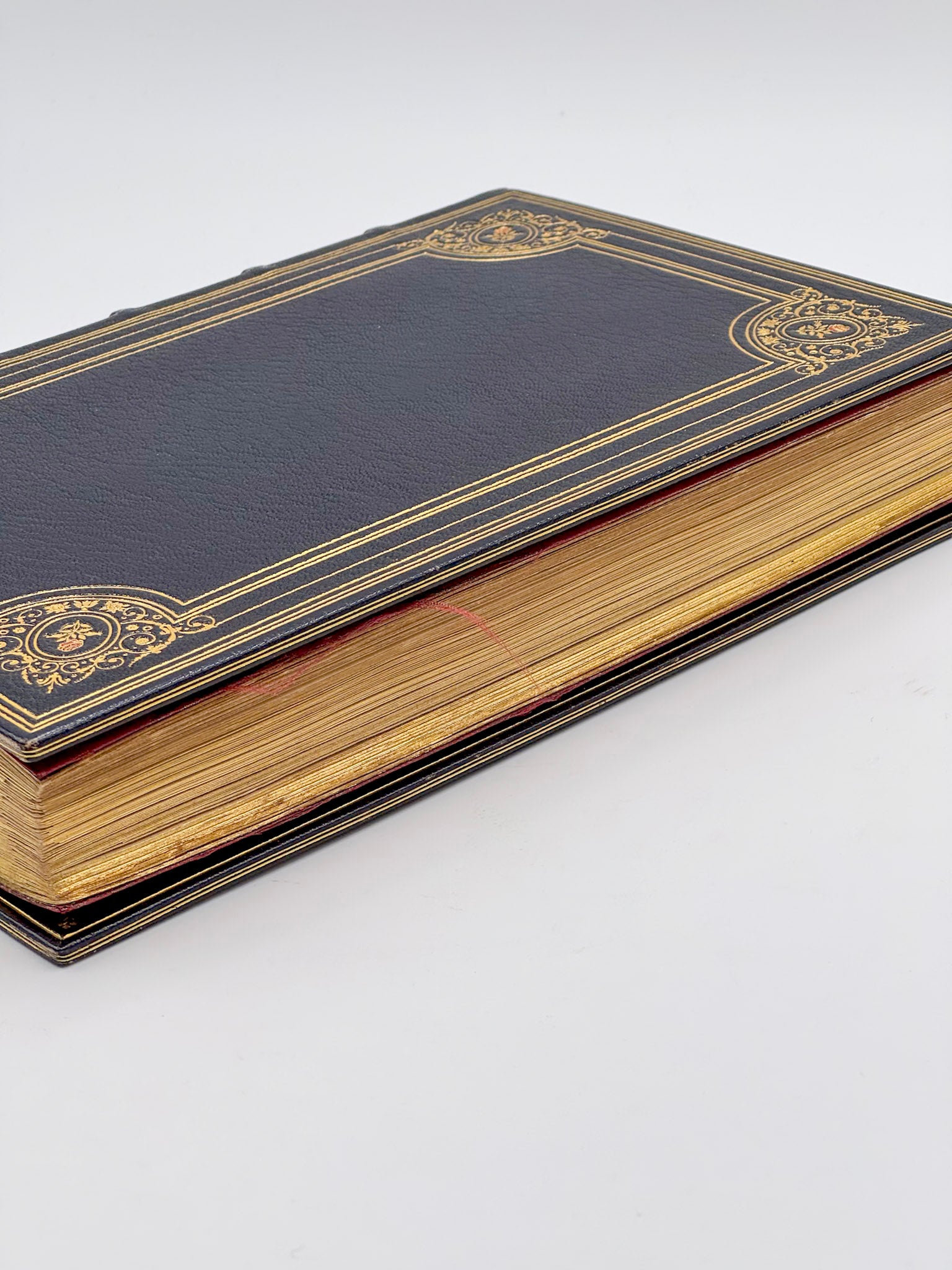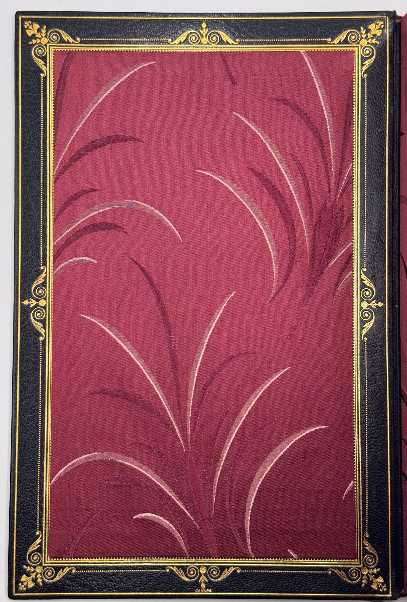 4to (268 × 183 mm). (1) f., IV, 327 pp. Full midnight-blue morocco, central triple gilt frame on each cover with floral corner tools surrounding a double oval enclosing a mosaicked rose, outer triple gilt border, spine richly gilt with repeated mosaicked rose motif, gilt lettering and date, gilt edges, double gilt fillet to board edges, doublures of bordeaux tabis embroidered with reed motifs; original wrappers and backstrip preserved. Binding by Canape.