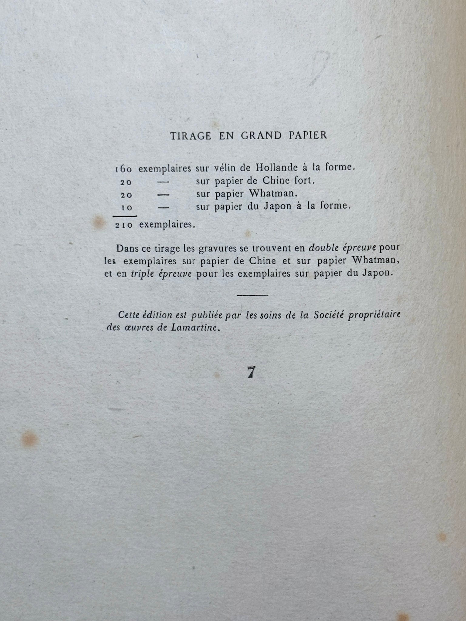 Our copy contains the engravings in triple proof state, as in the ten copies of the tirage de tête; it is no. 7.