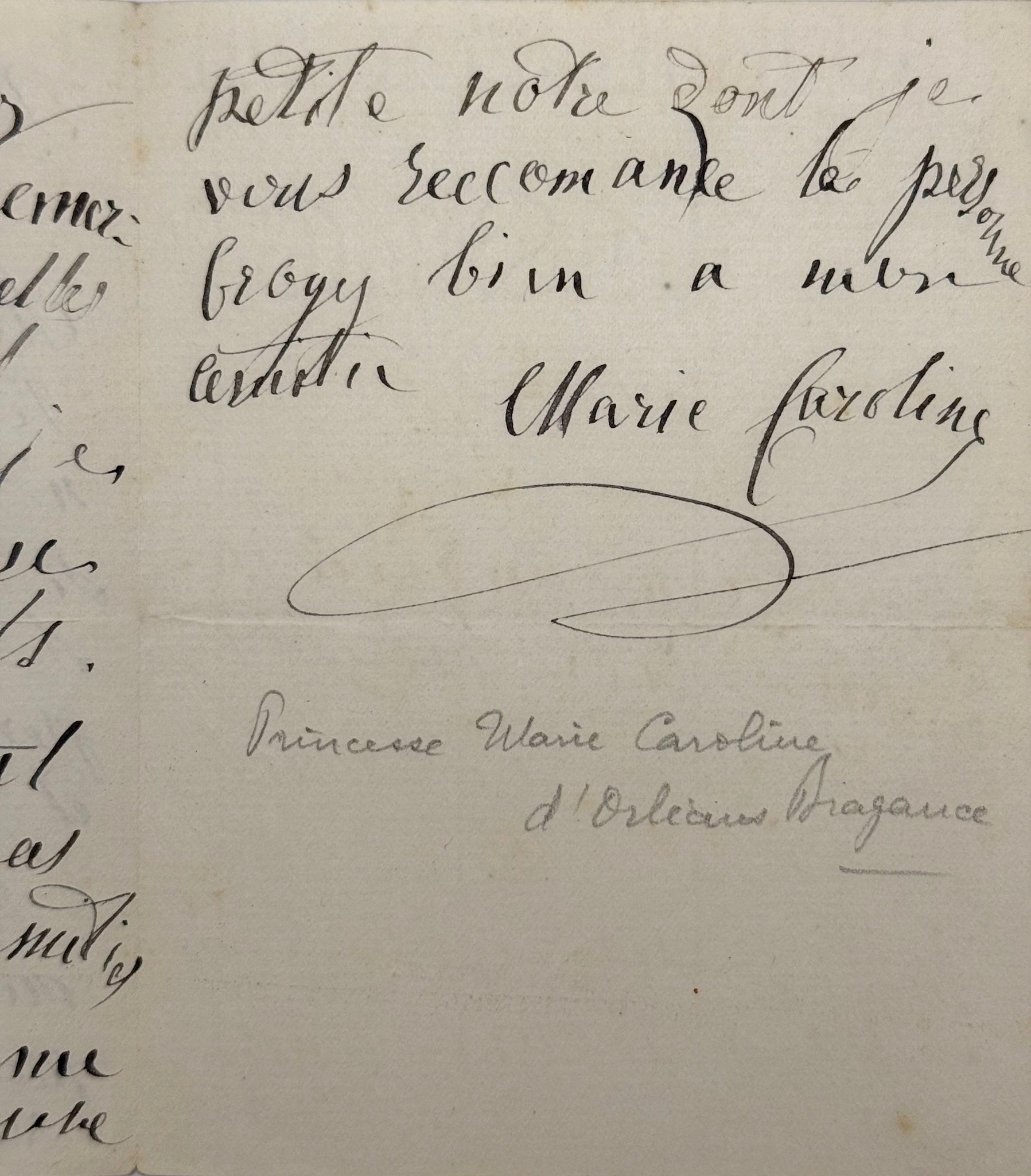BERRY (Duchess of), Marie-Caroline de Bourbon-Siciles (1798–1870). Autograph letter signed “Marie Caroline”, to her “cher Ned”.