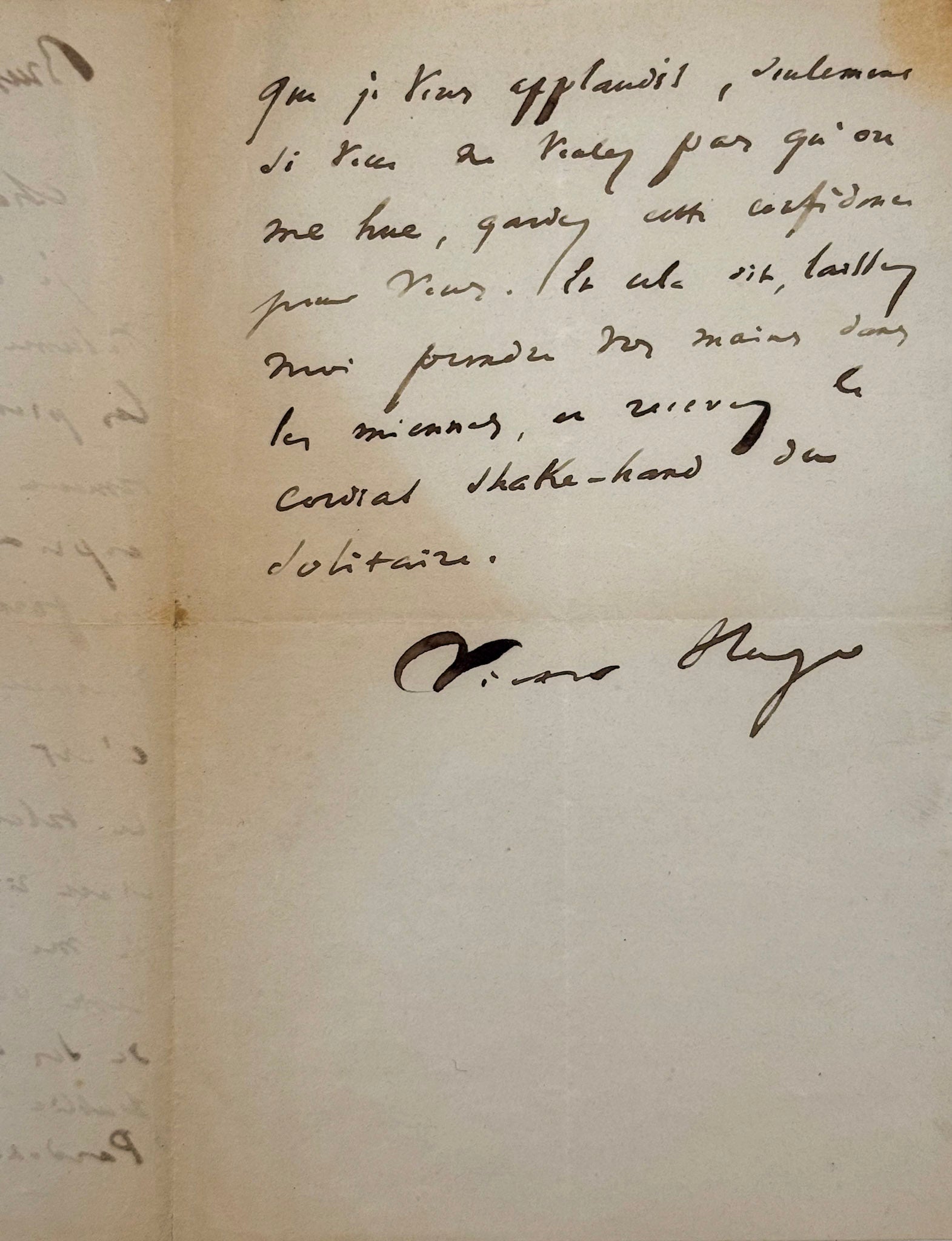 HUGO, Victor. Autograph letter signed “Victor Hugo”, to Paul Féval.