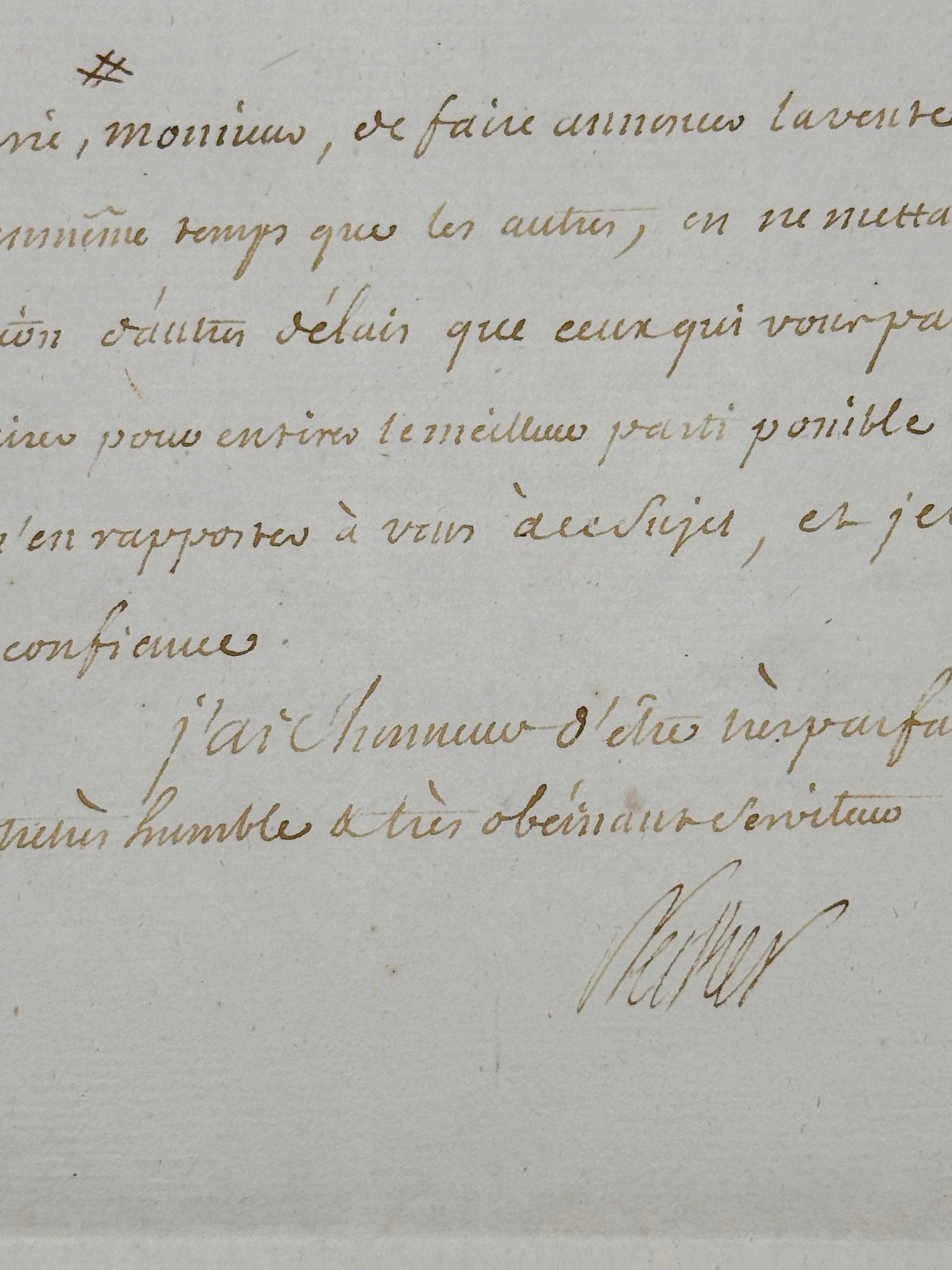An excellent example of Necker’s financial and administrative correspondence at a pivotal moment in the monarchy’s final crisis, showing his direct management of maritime assets and public auctions.