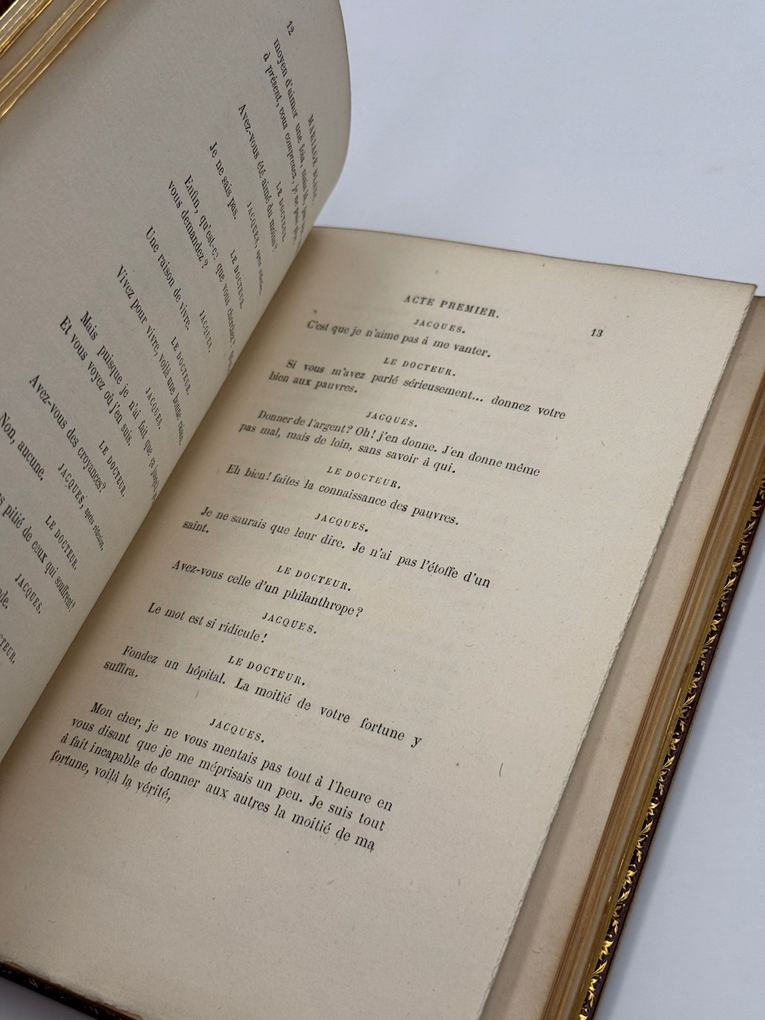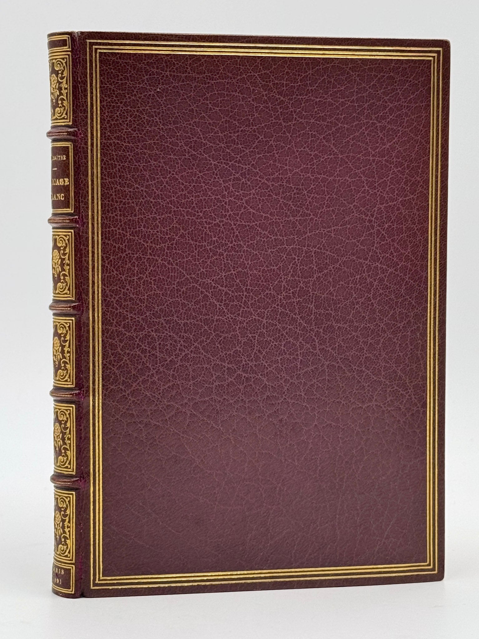 8vo (200 × 143 mm). (4) ff., 100 pp. Full aubergine morocco, triple gilt fillet border, spine with raised bands richly gilt in double-panelled compartments with cornerpieces and central rose tool, gilt lettering, double gilt fillet to board edges, gilt edges, gilt turn-ins; original wrappers and backstrip preserved; uncut. Binding by Chambolle-Duru.