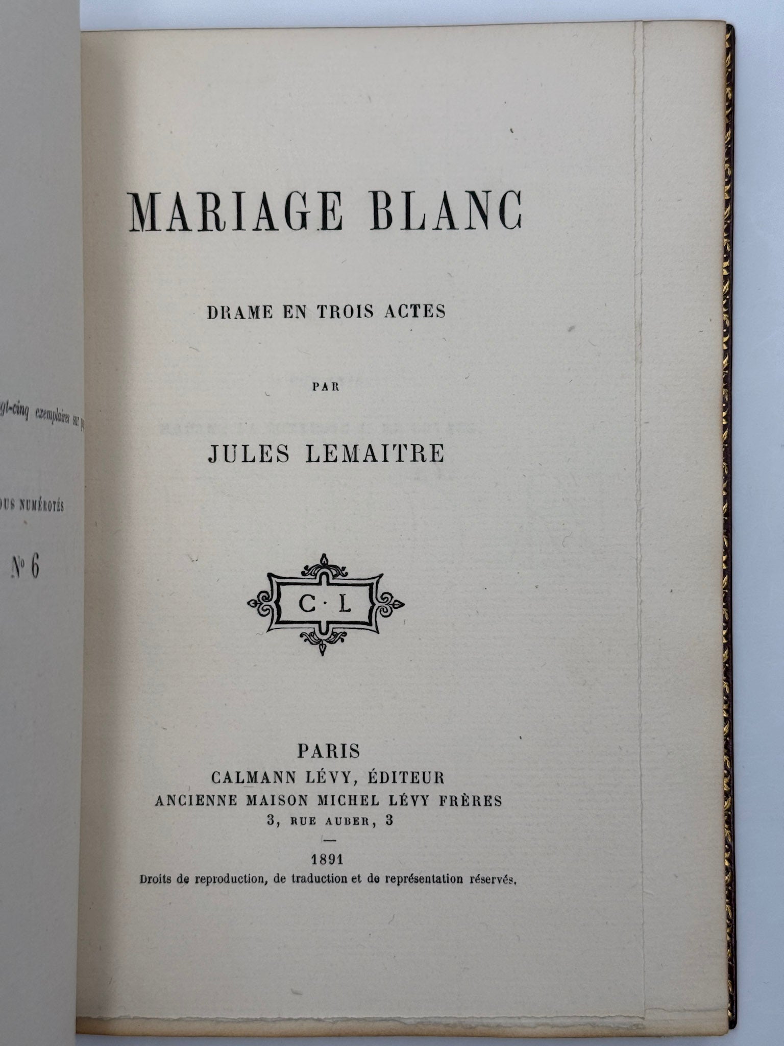 LEMAITRE (Jules). Mariage blanc. Drame en trois actes.