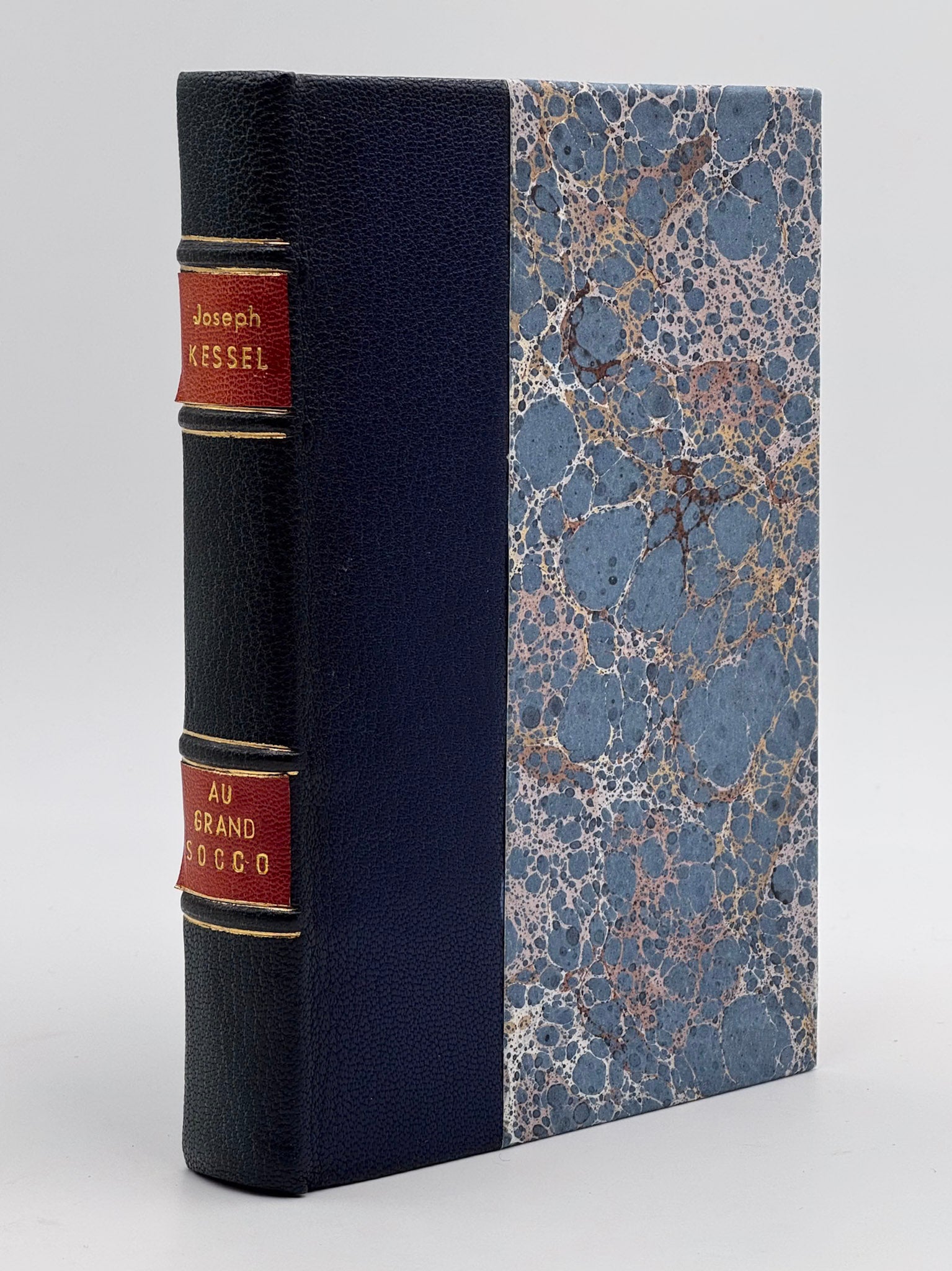 Demi-maroquin bleu nuit, dos à nerfs sautés, pièce de titre et d'auteur en maroquin rouge, auteur et titre doré, tête dorée (M. Delangre).