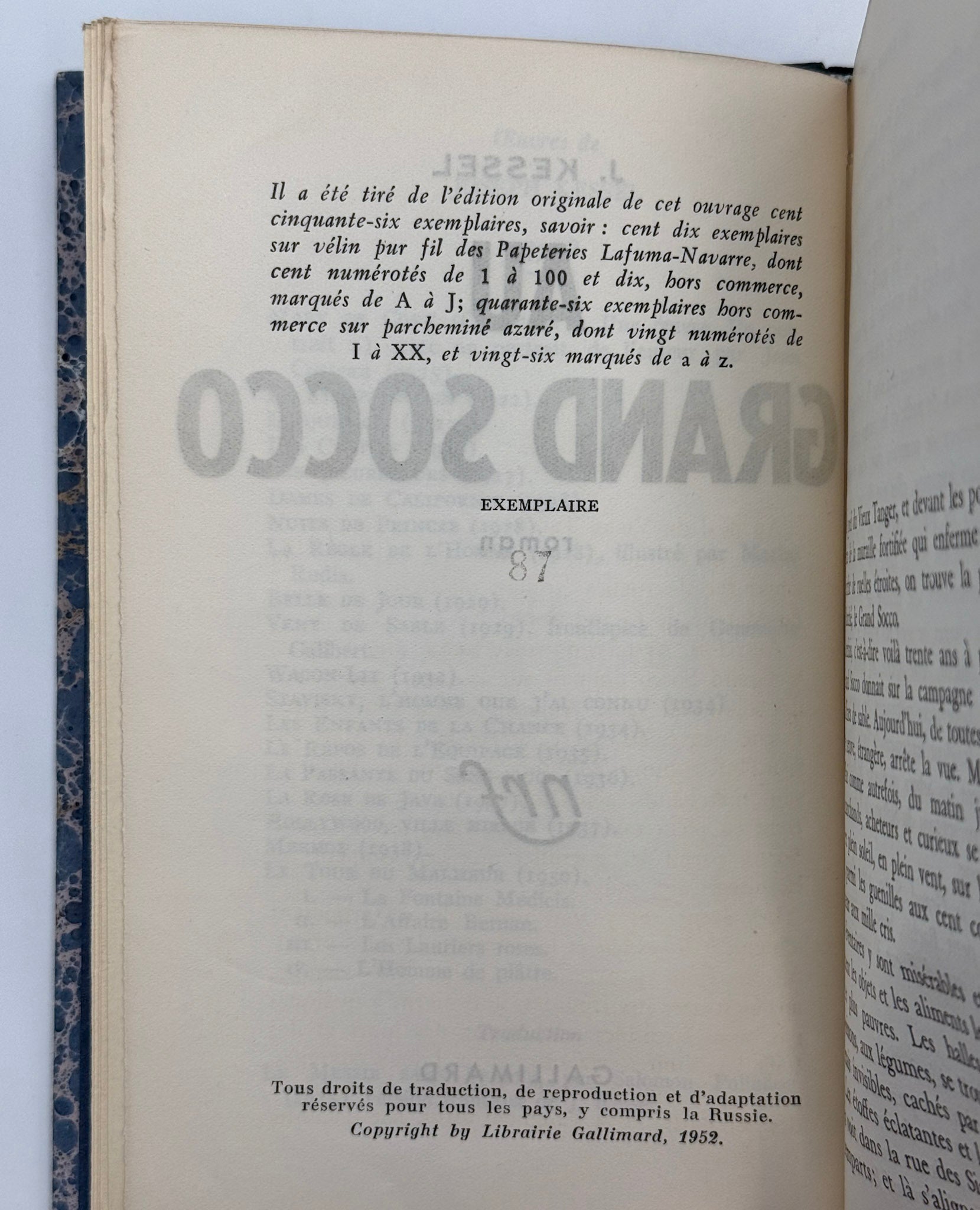 Un des 100 sur papier vélin pur fil Lafuma-Navarre, le nôtre le n°87.