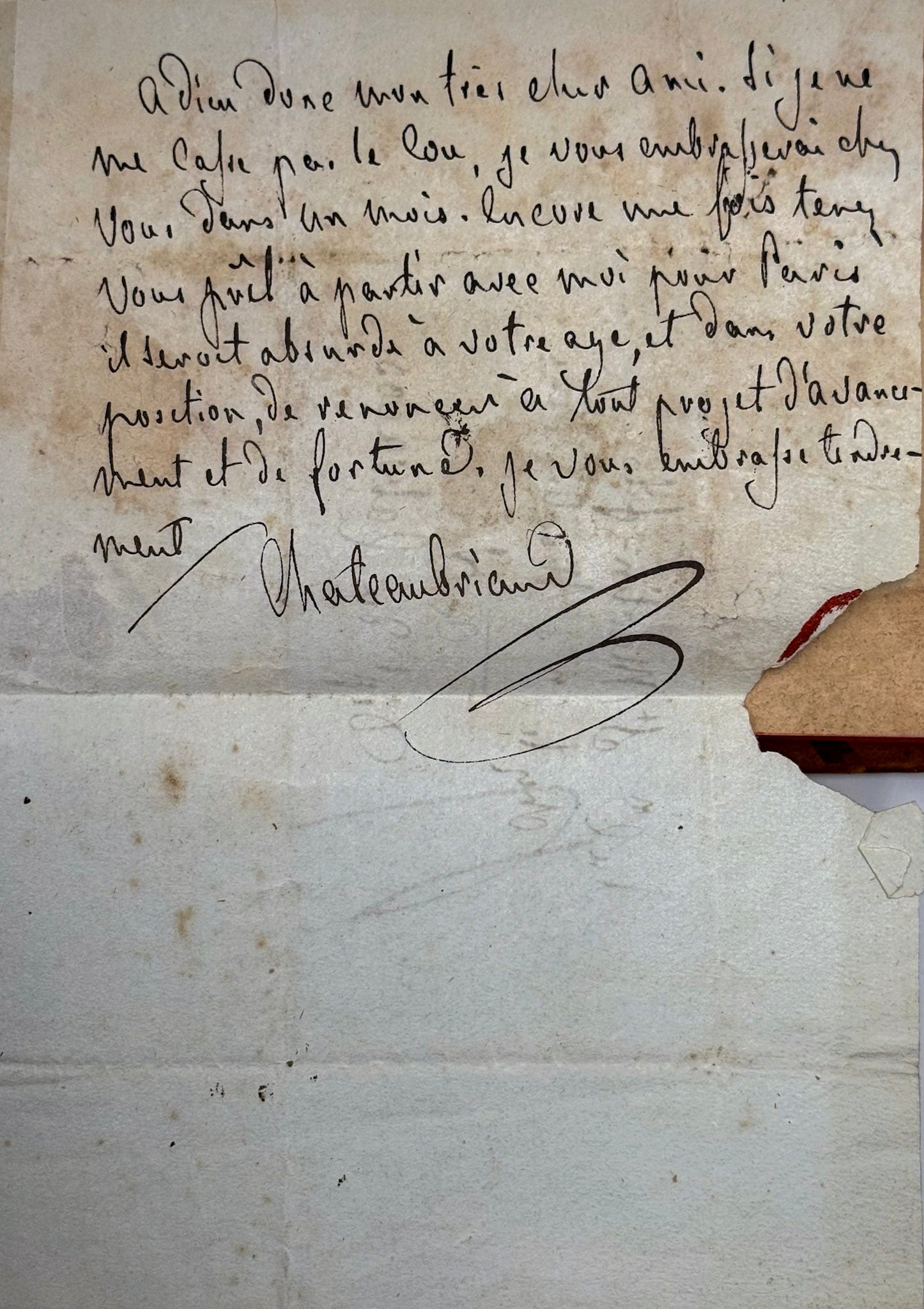 Ouvrage exceptionnel, truffé d’une lettre autographe signée de Chateaubriand, 3 pages, datée de Paris, vendredi 15 octobre 1802, à Monsieur Saint-Martin fils à Viré (Calvados).