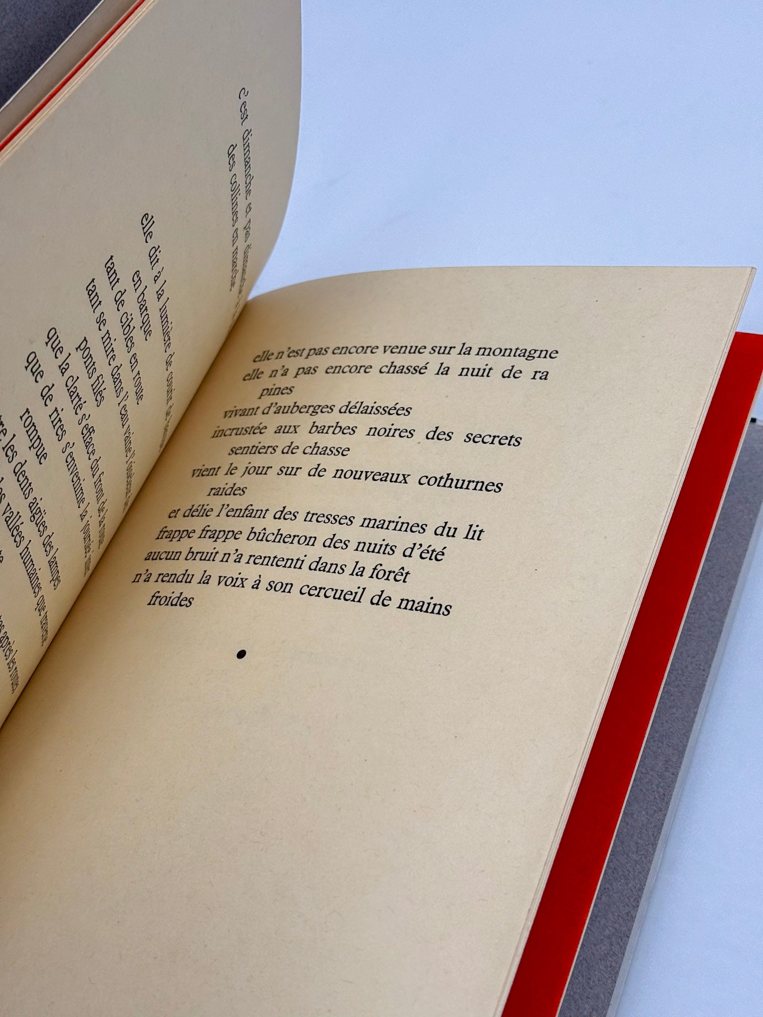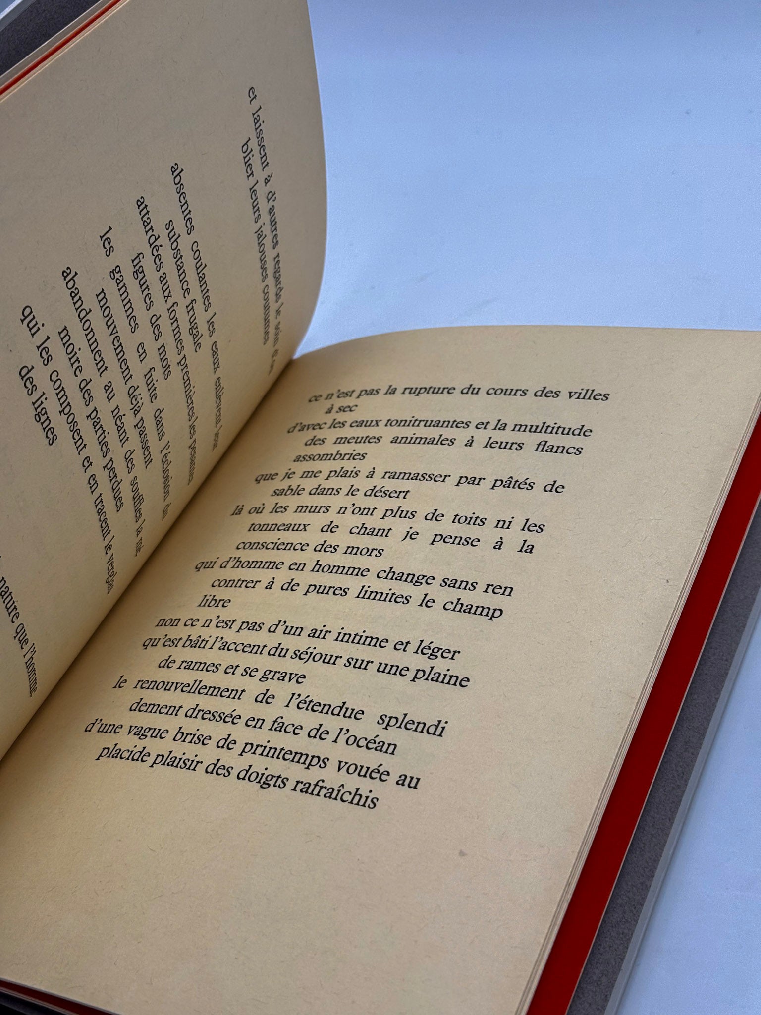 Demi-box blanc à bandes, dos lisse, auteur, artiste et numéro de collection frappés or (reliure attribuable à Pierre-Lucien Martin).