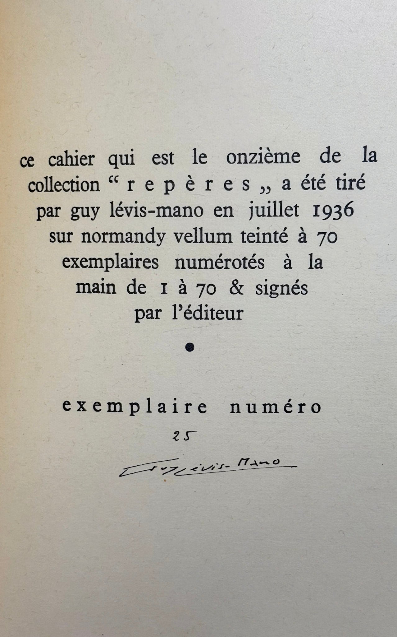 Tirage limité à 70 exemplaires, tous signés par l'éditeur, le nôtre le n°25.
