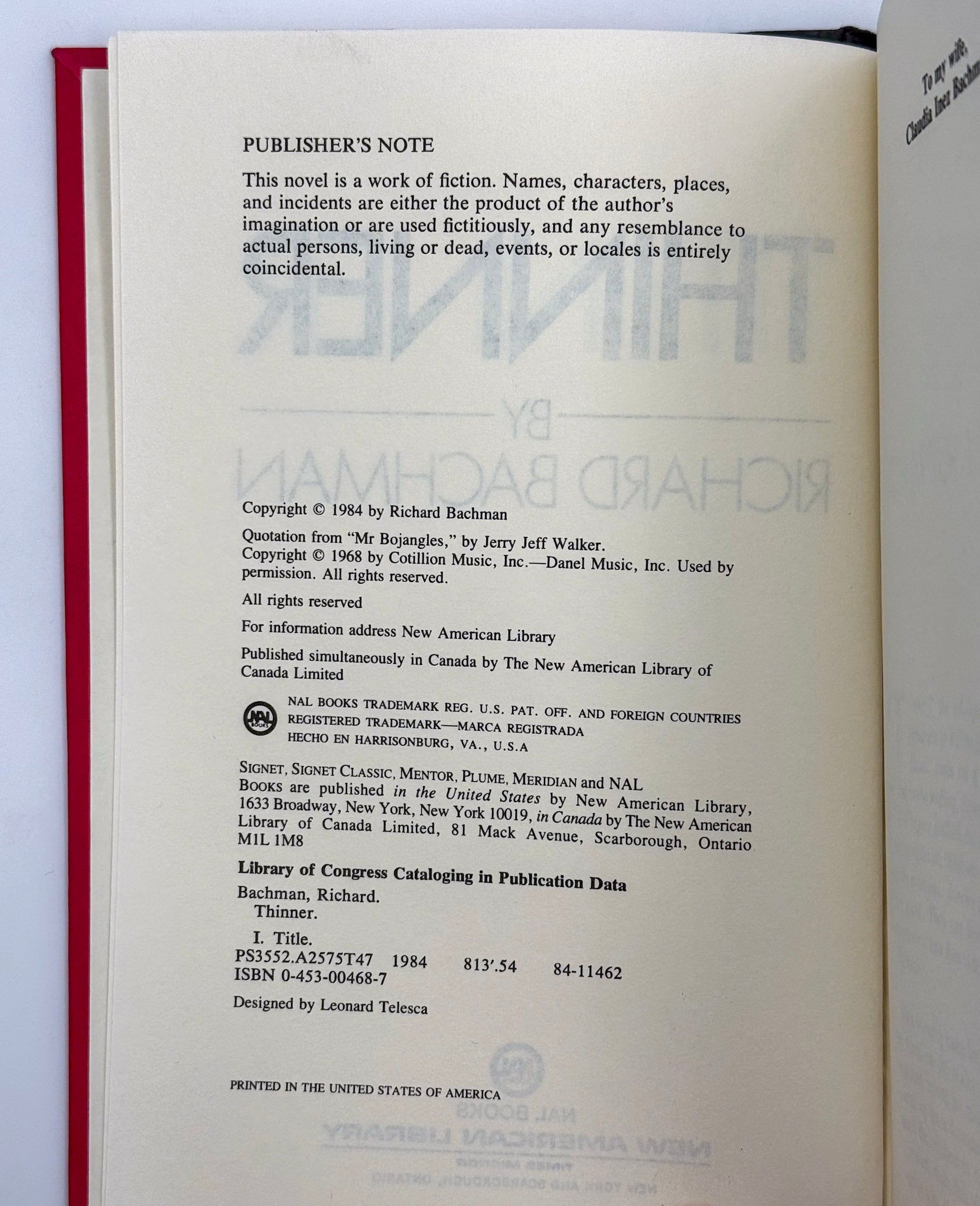 BACHMAN, Richard [KING, Stephen]. Thinner.