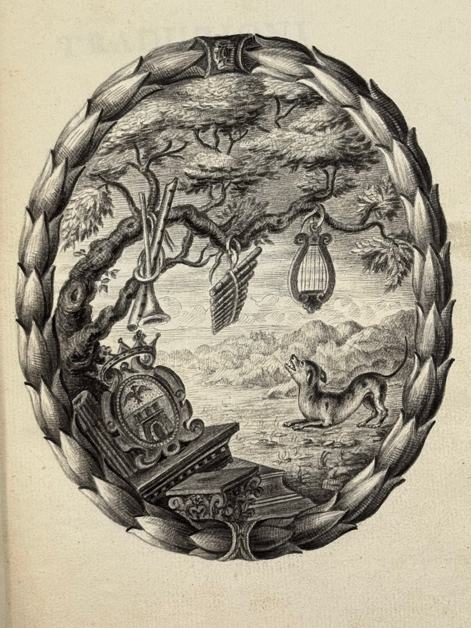 Superbe exemplaire ; probablement de la collection Giustiniani considérant le frontispice et la date de l'ouvrage, qui correspond à ce que Squarzoni note dans les collections post mortem du prince Benedetto Giustiniani : "La plupart des livres imprimés ont été publiés au XVIIIe siècle, ce qui témoigne d'une attention particulière portée à ce qui était nouveau et intéressant dans toute l'Europe [...] Enfin, la poésie occupait une place prépondérante dans une famille qui, depuis le début du XVIIIe siècle, comptait parmi ses membres des Arcadiens".