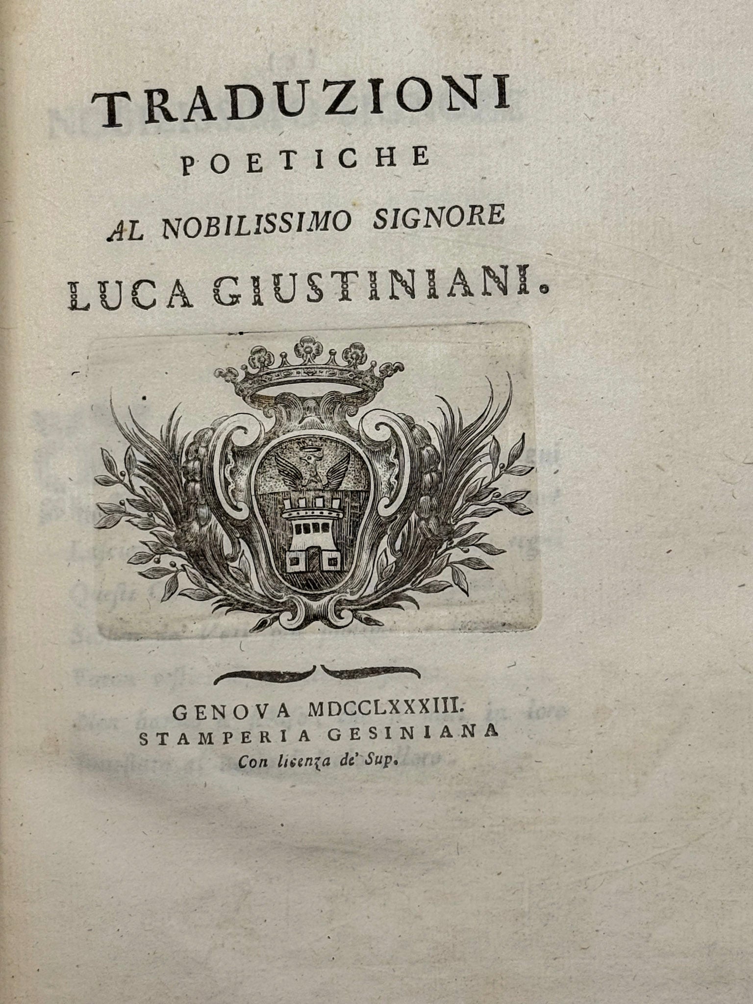 Traduzioni poetiche al nobilissimo signore Luca Giustiniani